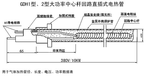 注:以上均可做成 220V 接地式结构,其长度、直径、功率不变